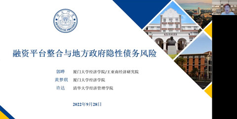 2022年9月28日上午,由av直播 主办,av直播 人文社会科学研究院、av直播 金融系、av直播 金融研究中心承办的长江论坛第一百五十六讲在腾讯会议平台通过线上方式举行。论坛邀请了厦门大学经济学院金融系教授郭晔做题为“融资平台整合与地方政府隐性债务风险”的学术论文报告。论坛由学院金融系李斌教授主持,学院林晚发、余静文、熊和平等多位老师和学生参加了此次论坛。