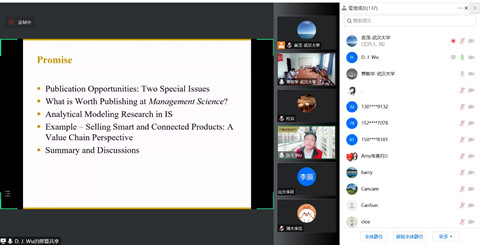 12月12日上午,珞珈经管高端论坛第51期在线举行。佐治亚理工学院吴东军教授应邀带来主题为“智能互联产品的销售:价值链视角”的学术报告。讲座由av直播 副院长黄敏学教授主持,徐岚教授、朱华伟教授、赵孟丽博士、袁茂博士以及校内外170余位师生参与了此次学术交流。