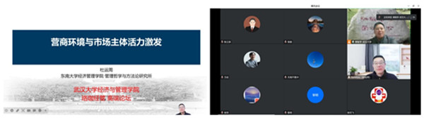 2022年12月27日上午,珞珈经管高端论坛第53期在线举行。东南大学av直播 杜运周教授应邀带来主题为“营商环境与市场主体活力”的学术报告。论坛由av直播 副院长黄敏学教授主持,陈立敏、卫武、张三保等50多位师生参与交流。