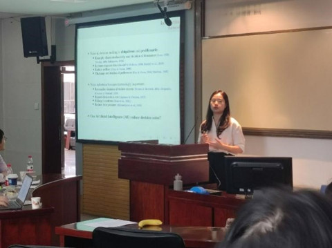 随后,来自北京大学的高彧老师报告了题为“Expertise and algorithm aversion: the role of training”的最新研究,她通过一个两阶段实验发现,相较于一个拥有同等经验的对照组,受过训练的专家们更愿意接受人工智能的建议。当人工智能表现不佳时,专家们更倾向于减少对其建议的权重;而当被人工智能超越时,他们变得更加依赖。这一结果挑战了人们对于“人工智能厌恶”的看法,表明专家们愿意采纳人工智能的建议,同时对其表现更为敏感。
