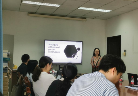李晨副教授报告了论文模糊偏好度量的相关研究成果“Ambiguity attitude and gender congruence”。研究通过设计Anagram task和Rotation task的实验发现,在刻板印象中与性别不匹配的领域,人们更厌恶模糊;在性别不匹配的模糊中,更高的模糊厌恶阻碍了人们进入这些领域;人们对自己在与自己性别不匹配领域的表现较为悲观,这种悲观情绪在很大程度上反映了性别差异。