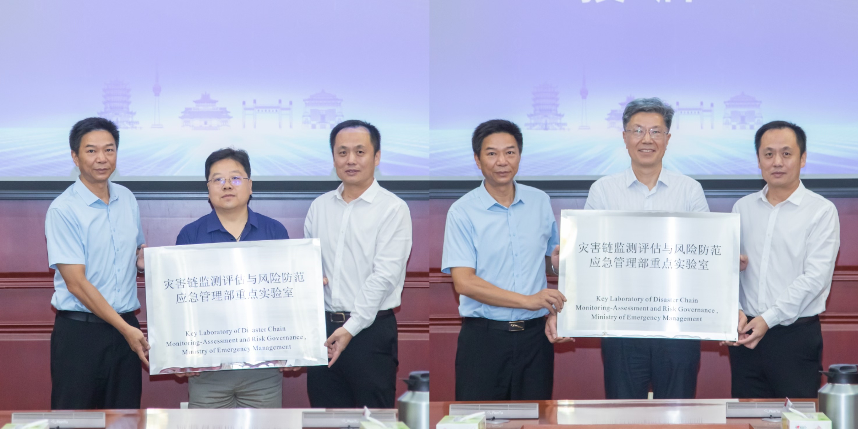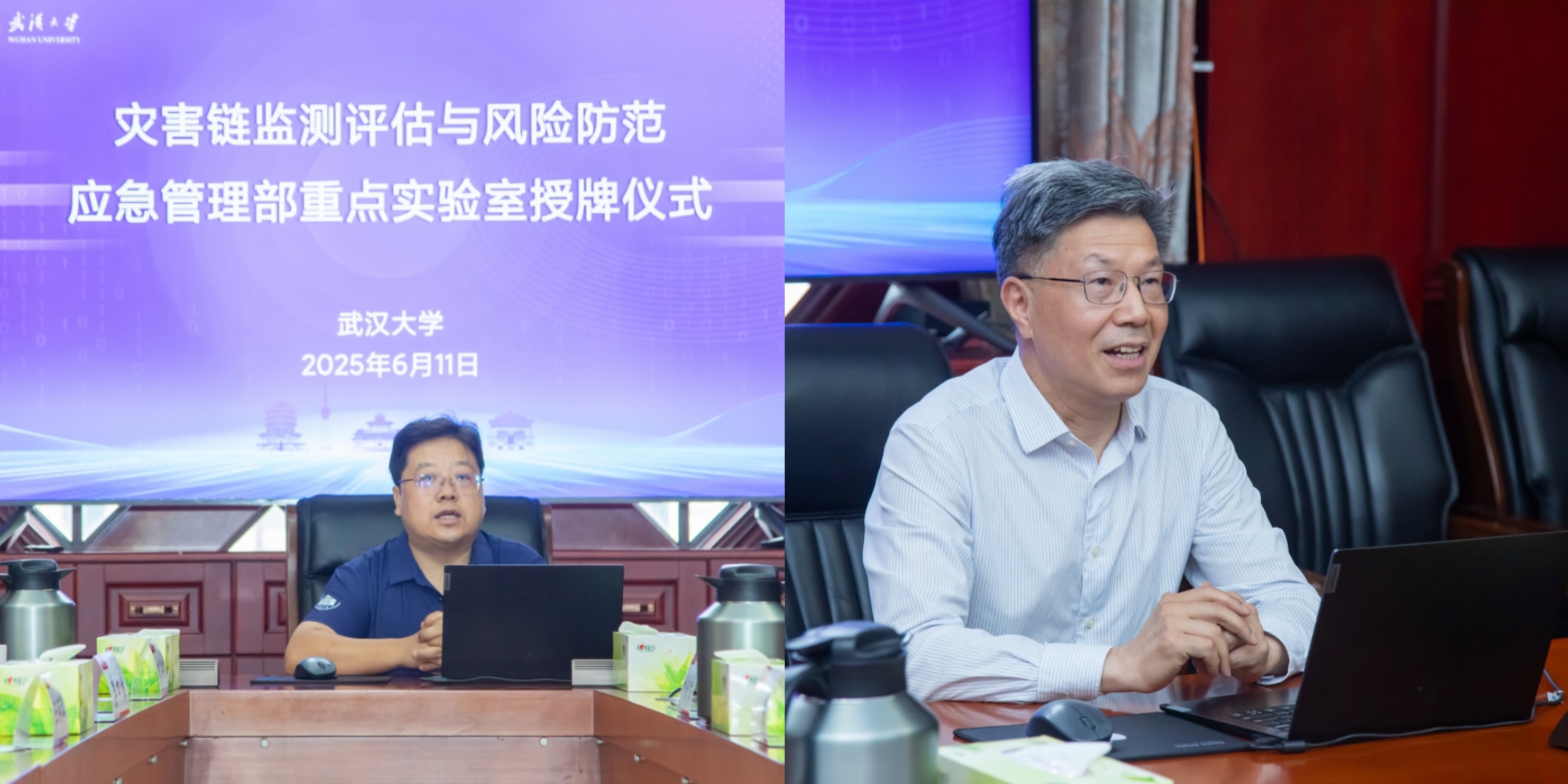 在授牌仪式中,应急管理部向av直播 测绘遥感信息工程全国重点实验室、av直播 分别授予实验室牌匾。