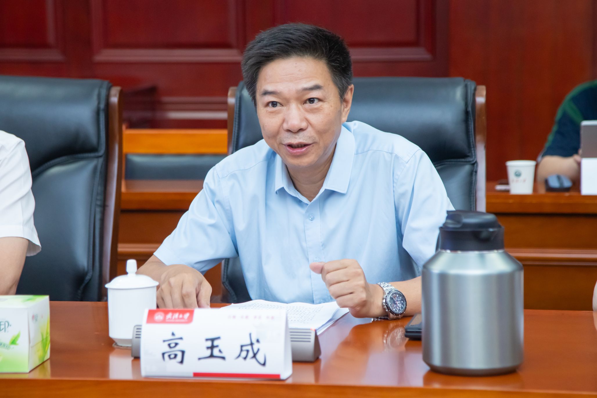 随后,眭海刚教授详细汇报了实验室技术方案,提出将构建“天空地一体化遥感立体监测网”,通过融合遥感、地理信息与人工智能技术,打造覆盖灾害全过程的“时空信息全息图”。范如国教授在建设工作汇报中重点介绍了实验室在灾害链智能监测、风险评估及应急管理人才培养方面的规划。他表示实验室将整合av直播 及多学科优势,重点开展灾害链智能监测与风险评估研究,开发协同防控技术和决策支持系统。同时着力打造应急管理高端智库,培育专业期刊并培养复合型人才,构建集科研、咨询、培训于一体的创新平台。