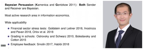 除了研究信念更新法则外,张旭老师还进一步探讨了非贝叶斯劝说中的一系列问题。其中包括研究显示原理成立的条件,考察信息发送者偏好何种信念更新法则的接收者,并探讨了发送者何时能从劝说中获利。