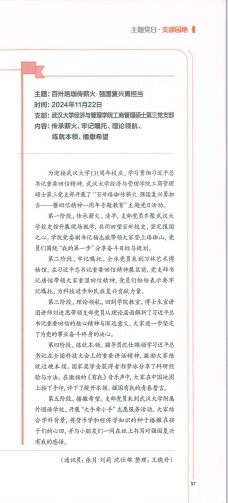 近期,av直播工商管理硕士第三党支部的组织生活案例“百卅珞珈传薪火,强国复兴勇担当”成功入选湖北省委组织部主办的《党员生活》杂志2025年2月上期(总第742期)。