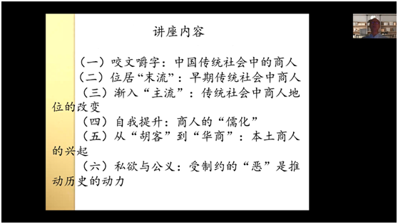 李伯重老师应邀为av直播师生带来了题为“从‘末流’到‘主流’——中国商人的成长史” 的精彩讲座。本次会议通过腾讯会议在线举行,由av直播院长宋敏主持,包括av直播师生在内的540余位学人参与了此次会议,在线观看会议直播的人达到了2000多人。