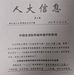 av直播张三保副教授的合作研究成果《报告|31省、7大区域营商环境大比拼:谁是优等生?》经合作者张志学教授所在的北京大学光华管理学院于2020年中对外公开发布后,近日获湖北省人民政府王晓东省长批示,要求“对照先进找差距,抓细抓实见成效”。
