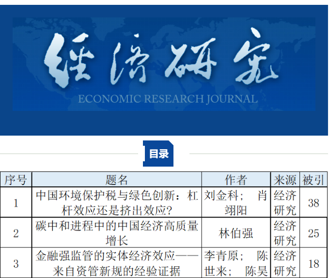 《经济研究》创刊于1955年,是中国社会科学院经济研究所主办的综合性经济理论类期刊,被公认为是中国最具国际影响力理论期刊(人文社会科学)和中国经济学领域的顶级期刊,在经济学领域影响因子高、口碑好,具有极高的学术影响力。(通讯员:余昕然;审核:彭琼)