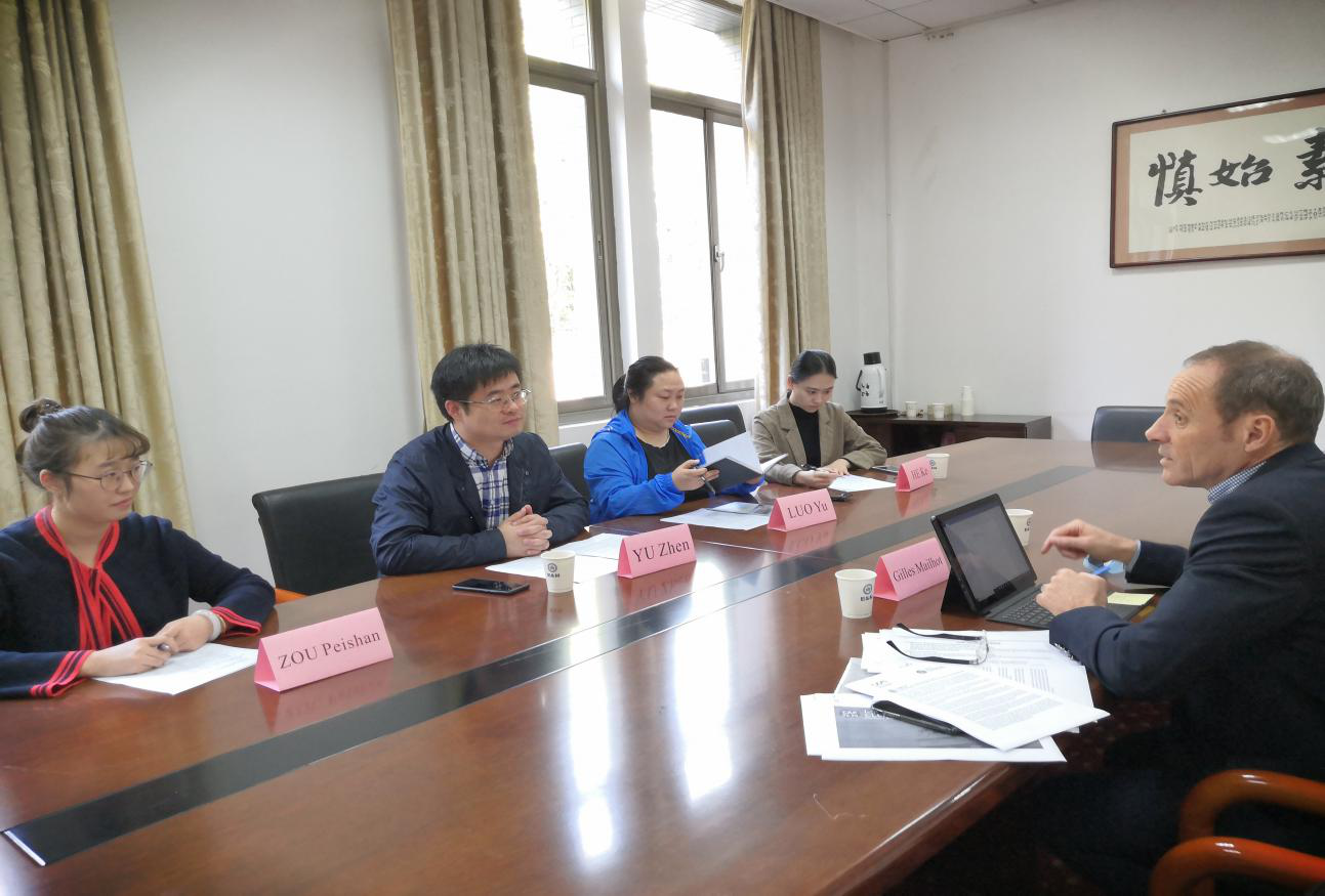 2019年10月30日,法国克莱蒙奥弗涅大学国际交流项目负责人Gilles Mailhot教授到访av直播,为其CERDI研究中心项目积极寻求合作机会。学院副院长余振教授出席了此次会谈,一同参加会谈的还有对外联络办公室外事专员罗昱、外事秘书何珂、邹佩珊。
