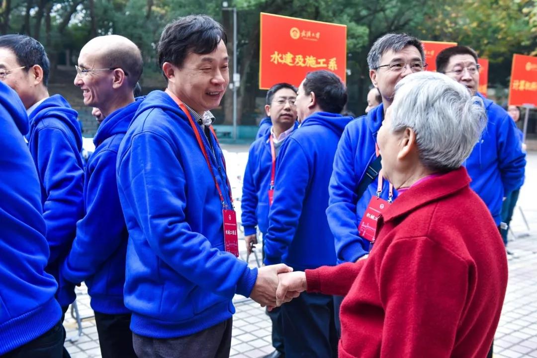 这一天,珞珈山天蓝水碧、橘绿橙红的斑斓画卷在金秋明净干爽的空气中徐徐展开,前几日来势汹汹的冷空气也悄悄收起了锋芒,一群鬓已微霜的“同学”言笑晏晏,前往av直播 梅园小操场集结。