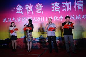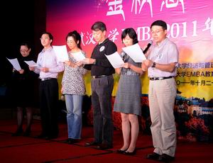 珞珈之山,流风甚美,东湖之水,璀璨芬芳。每当桂花香溢满园的时候,av直播 就会迎来EMBA学员秋季返校欢聚的日子。EMBA教育中心对返校日进行了精心安排,让学员们能够学在武大,乐在武大。在返校匆忙的间隙,各班以联欢的形式汇聚在一起,用歌舞传达情谊,共享欢乐的盛宴。10月21日晚,av直播 EMBA2011年秋季返校联欢晚会在武汉光谷金盾大酒店举行,参加此次宴会的班级有EMBA2009级昆明班、2010级武汉2班、2011级2班、2011级3班。av直播 院长陈继勇、常务副院长李燕萍教授、研究生院专业学位处赵丽娜、以及研究生教学管理办公室主任、EMBA教育中心办公室主任余艳琴出席了当日的联欢晚会。