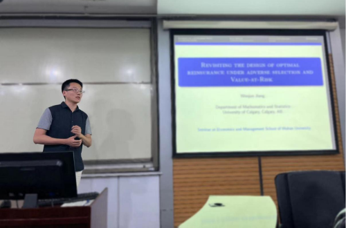 7月4日上午9:30-12:00,珞珈经管青年论坛第418期——保险与精算论坛在学院成功举行。本次论坛邀请到了加拿大卡尔加里大学数学与统计系的姜文骏老师进行学术报告,题目为“Revisiting the VaR-based optimal reinsurance design under adverse selection(重新审视逆向选择下基于VaR的最优再保险设计)”。保险与精算系的XIONG HENG老师担任论坛主持人,同时吸引了多位师生积极参与。