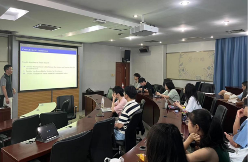 在报告中,姜老师主要探讨了在垄断市场中再保险公司如何在信息不对称情况下设计再保险合同,具有重要现实意义。与会的师生们表现出了浓厚的兴趣,与姜老师展开了互动和热烈讨论。此次论坛得到了2023年av直播 创新创业中心建设项目“《保险科技》产学共建课程”的支持。