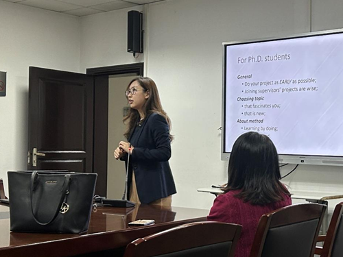 在报告中,李雪妮老师还分享了自己近期在Internet Meme和Meme Marketing这一新兴营销现象上所作的研究。与会的师生们表现出了浓厚的兴趣,与李老师展开了互动和热烈讨论。最后,李老师就博士生的生涯规划、如何选题、如何看待方法论、如何拓展社交网络提供了指导性的建议。