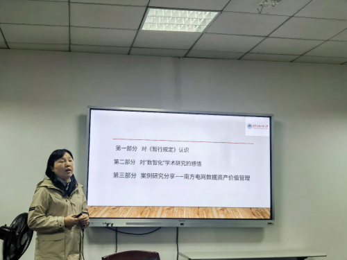 最后,王艳教授以南方电网公司为例,重点阐述了电网公司对电力数据资产的管理模式,探讨了电力数据资产的数据特征和价值特征。在实务层面,王艳教授指出,南方电网按总成本法计量内部使用的数据资产,涉及数据资产交易时,则依据市场定价法,此外还介绍了基于电力数据资产的金融创新行为。