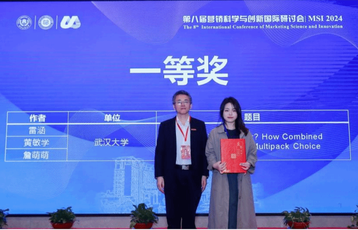 MSI2024共收到会议论文投稿710篇,经过论文初审、专家审稿环节,共录用会议论文519篇;经过专家匿名外审、终审,共评选出一等奖1篇,二等奖5篇,三等奖9篇,以及提名奖15篇,av直播市场营销与旅游管理系博士和硕士研究生共有6篇论文被录用并取得优异成绩。其中,黄敏学教授指导的硕士生雷涵的论文《The Easier, The Harder? How Combined Price Frames Improve Multipack Choice》获得优秀论文一等奖。