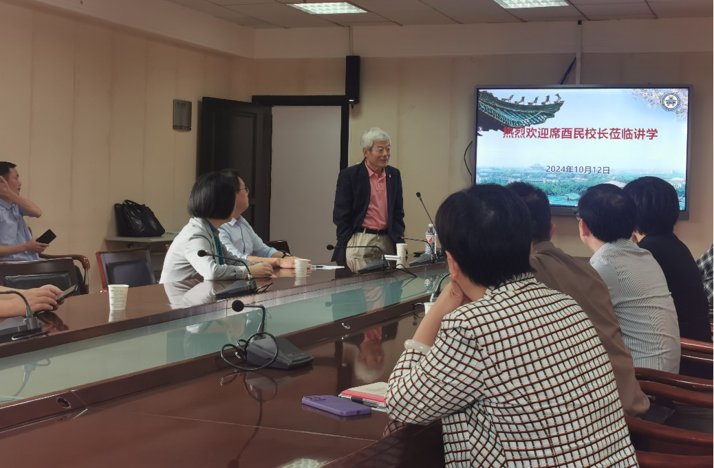 讲座结束后,袁玉峰与席酉民围绕当前国际化办学的发展趋势进行了交流。接着学院组织召开了专题研讨会,席酉民为av直播国际化建设发展工作提供了宝贵的指导意见和富有启发性的建议。
