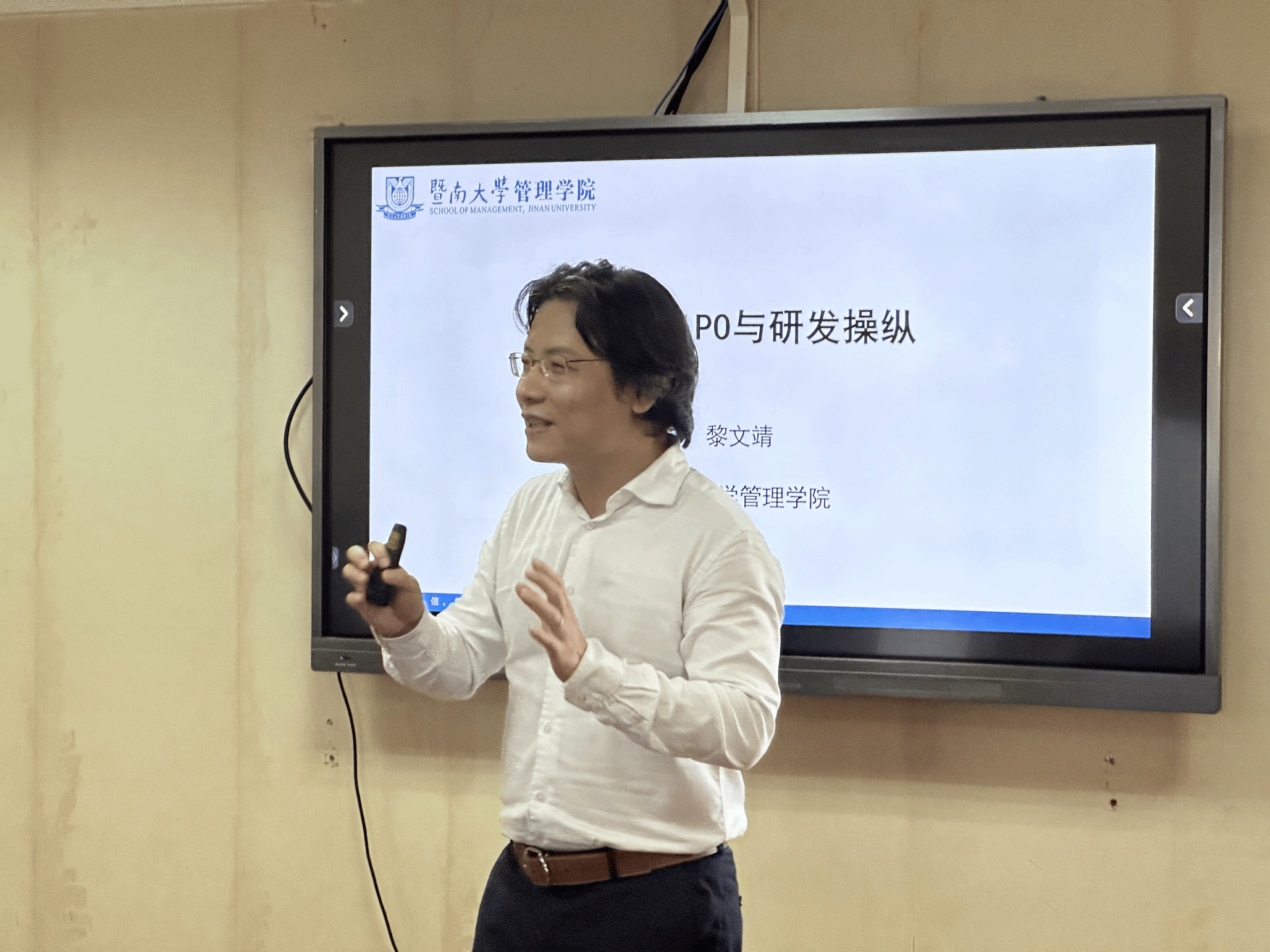 10月18日下午,珞珈经管创新论坛第109期在学院419会议室成功举行,本次论坛邀请暨南大学黎文靖教授作题为“月之暗面:科创板IPO企业创新操纵”的学术报告。学院李青原、周楷唐、林晚发等多名师生参加,论坛由潘红波老师主持。