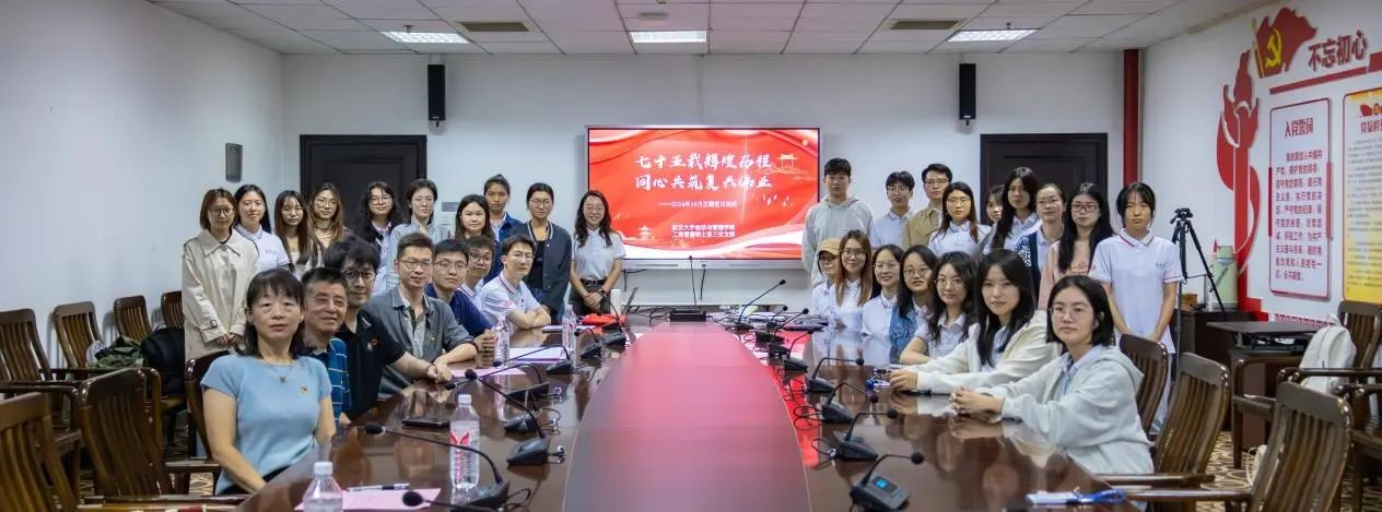 在活力风采展示环节,工商硕三支部以严清华老师编写av直播 院史为线索,通过生动的情境演绎,展现了一代代珞珈经管人的使命与担当。