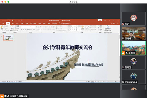 2022年11月10日下午,由av直播 会计系主办的蓝月亮珞珈论坛第97期在线举行。论坛邀请了新加坡管理大学会计学院张连栋教授做题为“社交媒体中的雇员战略披露研究”的学术论文报告。论坛由学院会计系李青原教授主持,学院周楷唐、林晚发等多位老师和学生参加论坛。