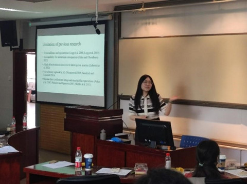 随后,来自北京大学的高彧老师报告了题为“Expertise and algorithm aversion: the role of training”的最新研究,她通过一个两阶段实验发现,相较于一个拥有同等经验的对照组,受过训练的专家们更愿意接受人工智能的建议。当人工智能表现不佳时,专家们更倾向于减少对其建议的权重;而当被人工智能超越时,他们变得更加依赖。这一结果挑战了人们对于“人工智能厌恶”的看法,表明专家们愿意采纳人工智能的建议,同时对其表现更为敏感。