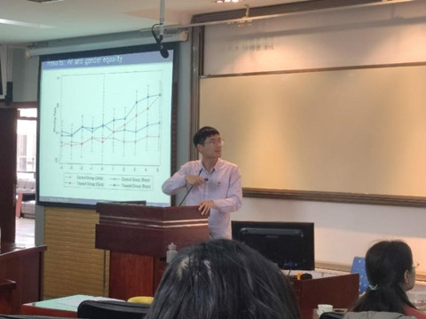 下午场,首先是来自厦门大学的包郑扬老师报告了题为“Can Artificial Intelligence Improve Gender Equality? Evidence from a Natural Experiment”的最新研究,他提出,女性在许多领域的代表性不足,尤其像围棋棋手等职业的性别构成改变很慢,而人工智能的最新发展提供了一个可能的解决方案:创造一个性别中立的学习环境。此研究用一个基于围棋教学的自然实验来检验AI培训的有效性,结果发现在提高学生的下棋技能方面,Al的表现优于人类教师,并减少了之前存在的性别差距,这证明人工智能有可能促进社会平等。