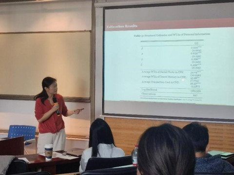 接着,来自av直播 的薛莲老师报告了题为“Strategic Interactions with an Algorithm Assistant: The Power of Data and Mechanism”的最新研究,她探究个人接受基于人工智能(AI)算法的建议意愿,并将数据可用性和算法机制作为算法接受度的主要驱动因素,提出substitution effect和complementary effect两种效应。该研究结果提供了促进用户信任算法的条件的见解,并讨论了引入AI对社会福利的影响,这将对市场和经济产生重要影响。