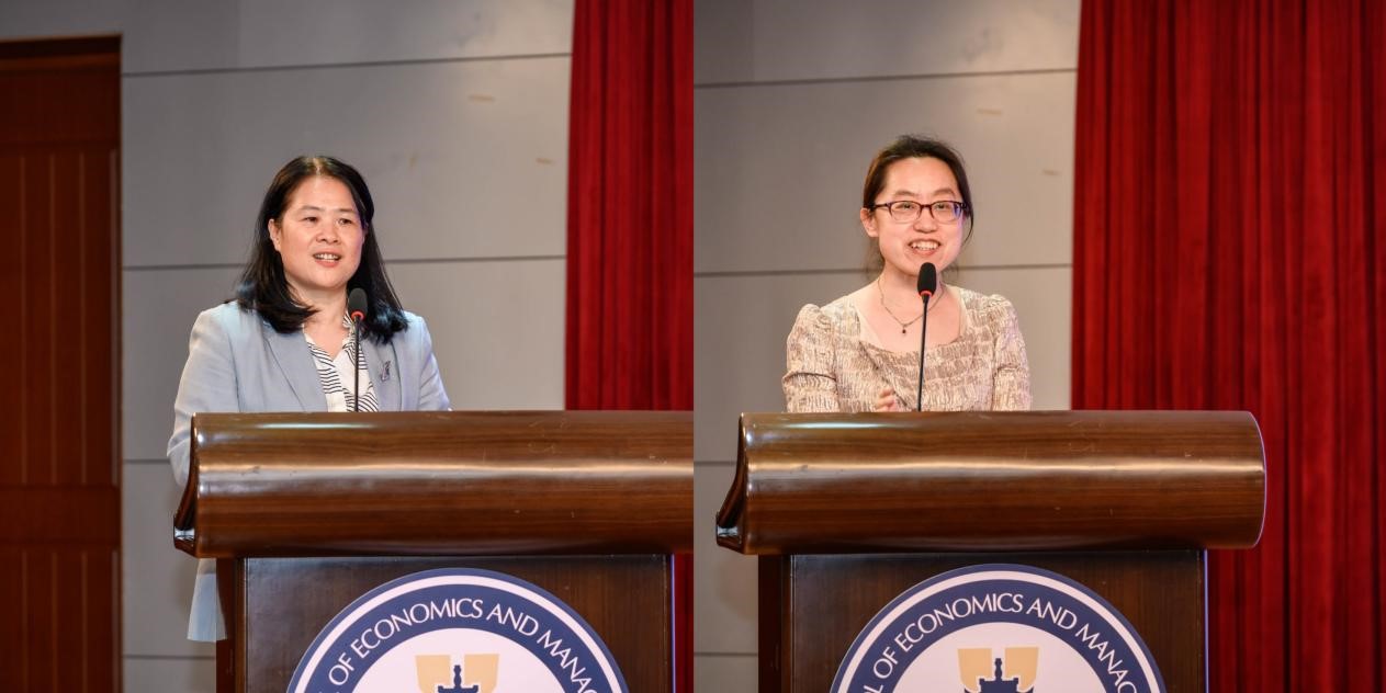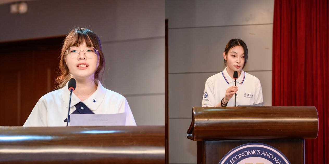 研究生代表沈湘和本科生代表彭芊韵在颁奖后的感言中表达了对学院和营销专业的深深感谢。她们的发言充满了对知识的渴望和对未来的憧憬,展现了av直播 市场营销专业学子的风采。