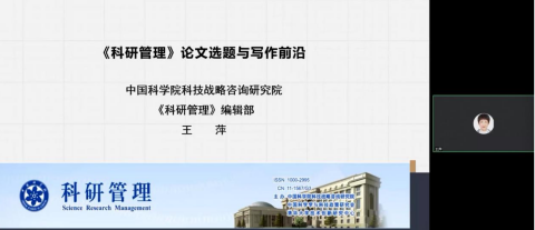《科研管理》编辑部主任王萍以《〈科研管理〉论文选题与写作前沿》为题,强调《科研管理》刊物一贯坚持理论与实践相结合、推广国际管理理论与方法的办刊宗旨,着力打造科技政策、创新、管理与战略四大主题模块,将文章选题是否恰当、题目是否新颖、方法是否适宜、是否跨学科研究等作为文章价值判定标准,最后分享了《科研管理》近期的重点选题。
