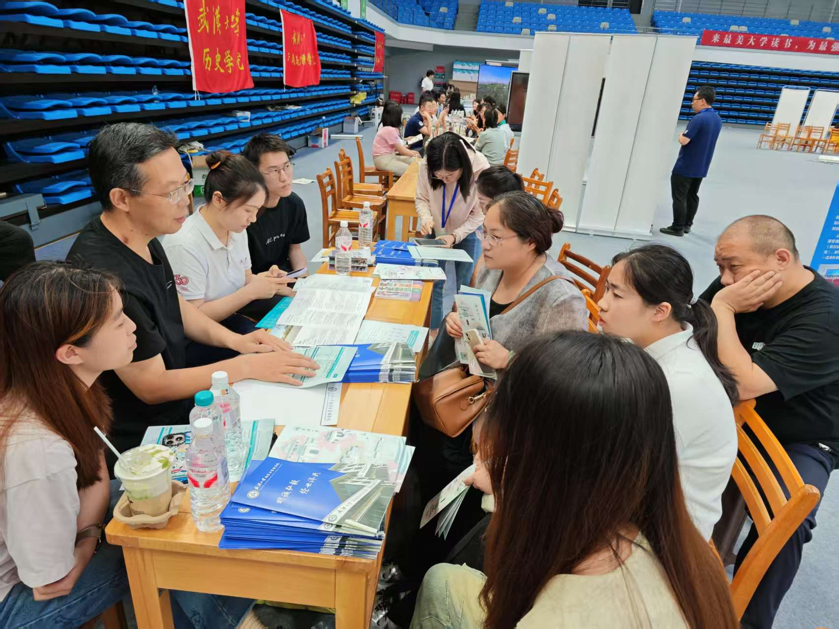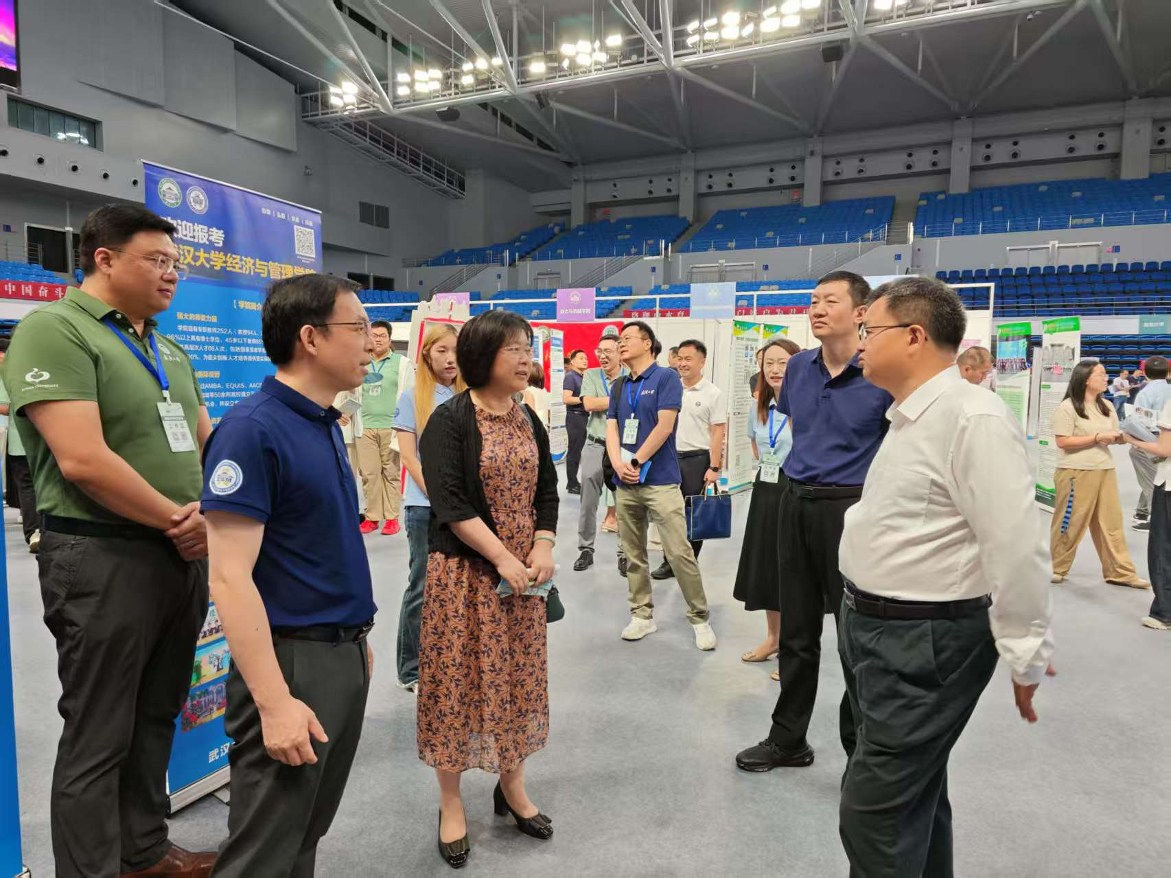 6 月 22 日,av直播 校园开放日暨高考招生咨询会在卓尔体育馆举行。av直播积极响应,组织师生参与布展及咨询。学院党委书记王丽萍、院长聂军、党委副书记李好、副院长刘林青现场指导,多名师生志愿者为考生和家长答疑解惑。