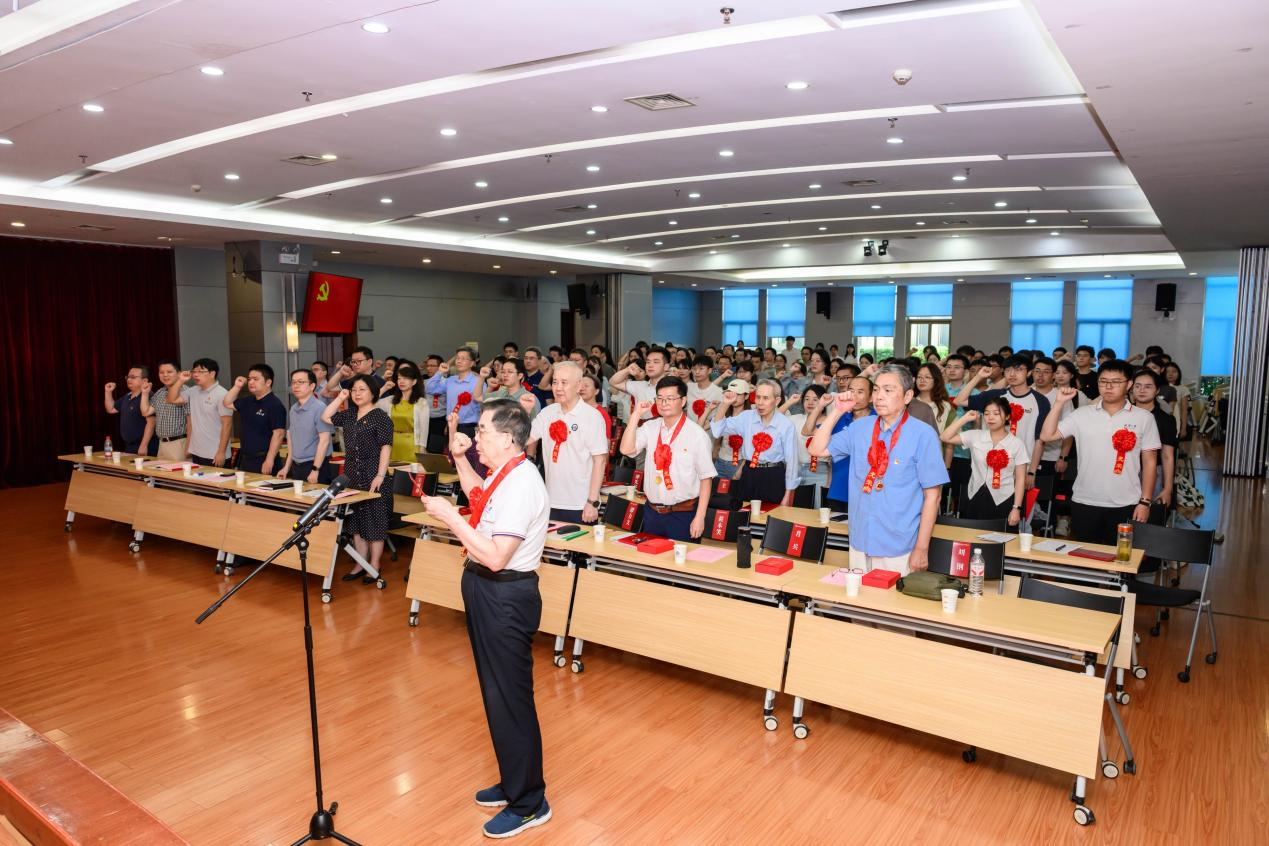 大会还举行了新党员入党宣誓、老党员重温入党誓词仪式。在“光荣在党50年”纪念章获得者肖兵同志的领誓下,全体党员庄严宣誓。