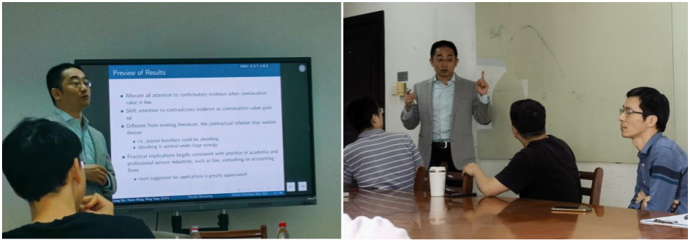 5月18日下午,经济学高级研究论坛第200期在av直播 C366举行。来自上海交通大学安泰av直播 的戴亮副教授带来了主题为“Dynamic Contracting with Flexible Monitoring灵活监控的动态合同”的学术报告。