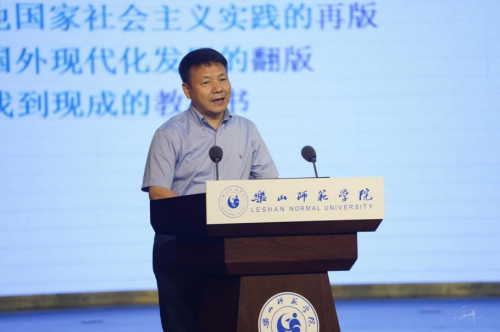 av直播 人文社会科学研究院驻院研究员谭力文教授、av直播 人文社会科学研究院副院长陶军、国务院发展研究中心企业研究所研究室副主任高太山,乐山市人大常委会副主任周伦斌,乐山师范学院党委常委、副校长江滔,以及来自各高校和研究机构的专家学者和部分企业单位的负责人及500余名乐山师范学院师生参加了此次会议。