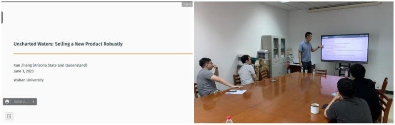6月1日下午,经济学高级研究论坛第201期在av直播 举行,来自亚利桑那州立大学的张堃老师为av直播师生带来了主题为“Uncharted Waters: Selling a New Product Robustly”的学术报告,这是一篇关于信息设计和产业组织理论的文章,学院多位师生参加了此次论坛。
