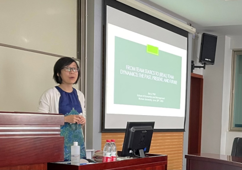 李嘉强调现有的团队理论多为静态的,不适应于团队的动态属性,因此有必要系统地开展团队的动态研究。她基于团队成员变动和团队多样性变动介绍了团队动态产生的原因及影响,并阐述了她开展的相关研究及理论的主要观点。此外,李嘉进一步讲述了团队结构/层级和团队情境的相关内容,并就人类-AI/机器人团队合作问题进行了简要讨论,分享了关于该问题的未来研究方向。