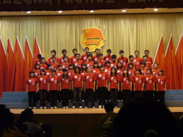 4月27日18:00,av直播 纪念“五四”运动90周年表彰大会暨“祖国万岁”红歌合唱大赛在人文馆成功举行。来自全校各院系的22支队伍参加了此次合唱大赛。一首首红歌响彻着人文馆的主厅,表达着武大莘莘学子的爱国情怀,演唱或慷慨激昂,或深沉舒缓,或清新灵动,为现场的评委观众们奉上了一场丰富的视听盛宴。