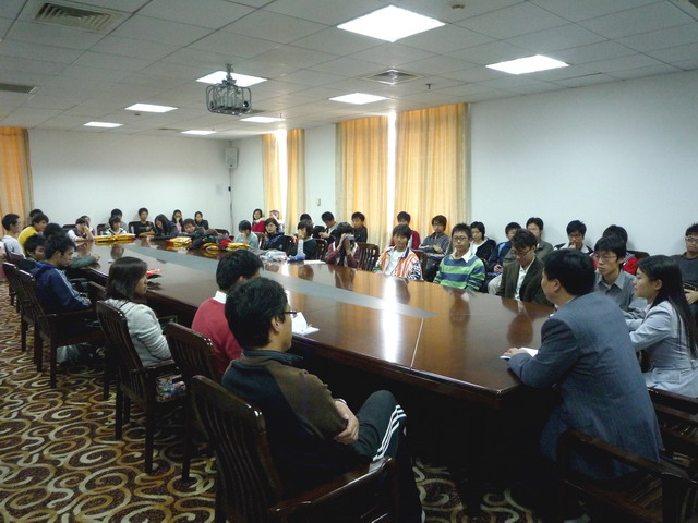10月30日中午,av直播校运动会的动员大会在第七会议室隆重举行。院党委副书记郑先公、团委书记陈晓玥、08级辅导员房海鹏、运动员指导教练余俊明及上届分管体育部主席于琪出席了会议。会议由现任体育部分管主席高鹏主持。