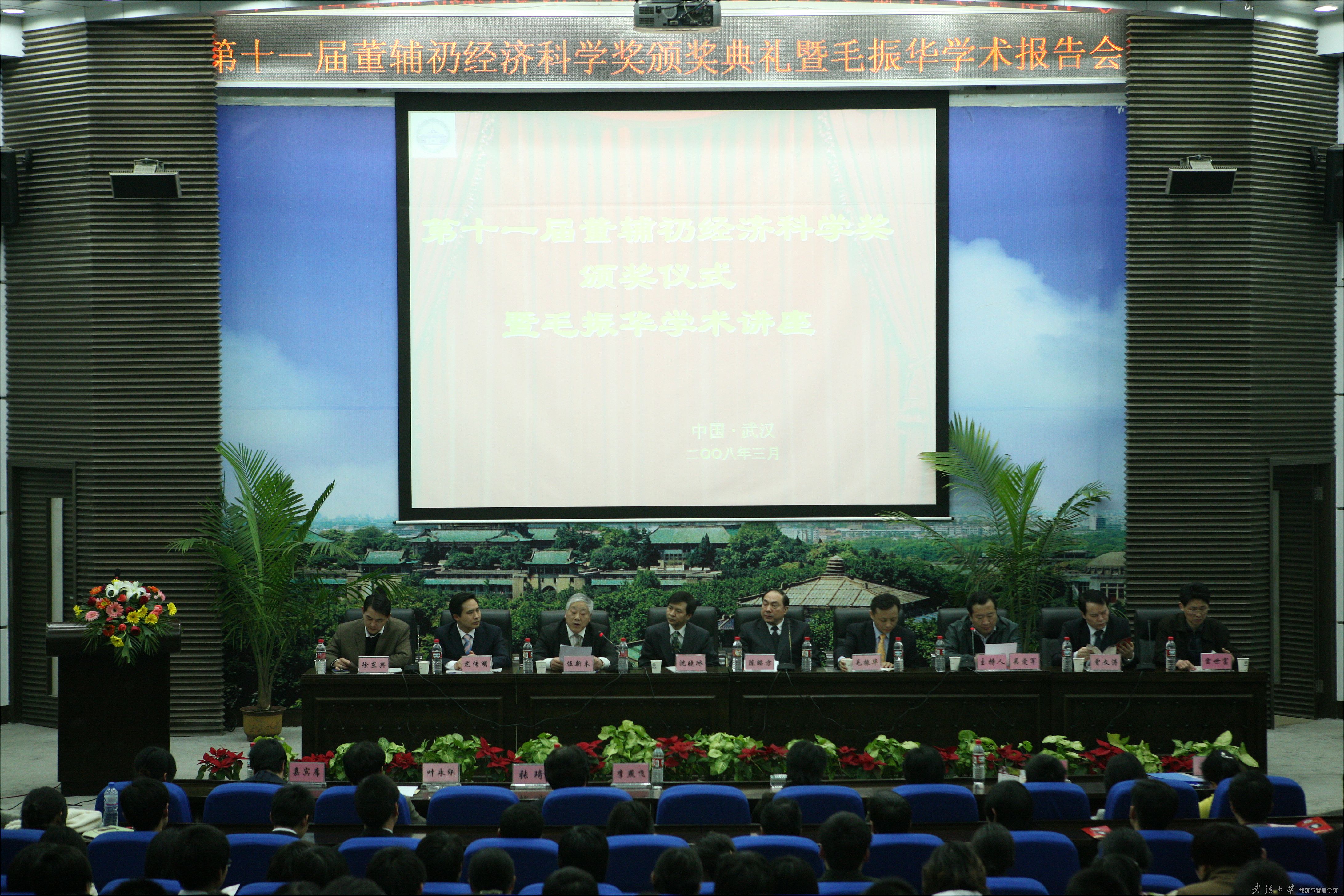 3月11日下午,第十一届董辅礽经济科学奖颁奖典礼暨毛振华学术报告会在av直播 报告厅隆重举行。董辅礽经济科学发展基金会理事长毛振华、秘书长沈晓冰、理事曾文涛、以及我校常务副校长陈昭方教授、研工部部长吴爱军、副部长雷世富、学生工作部副部长徐东兴、av直播 党委书记尤传明、伍新木教授等出席了颁奖典礼,2007年我校共有十名本科生,二十名研究生获此殊荣。