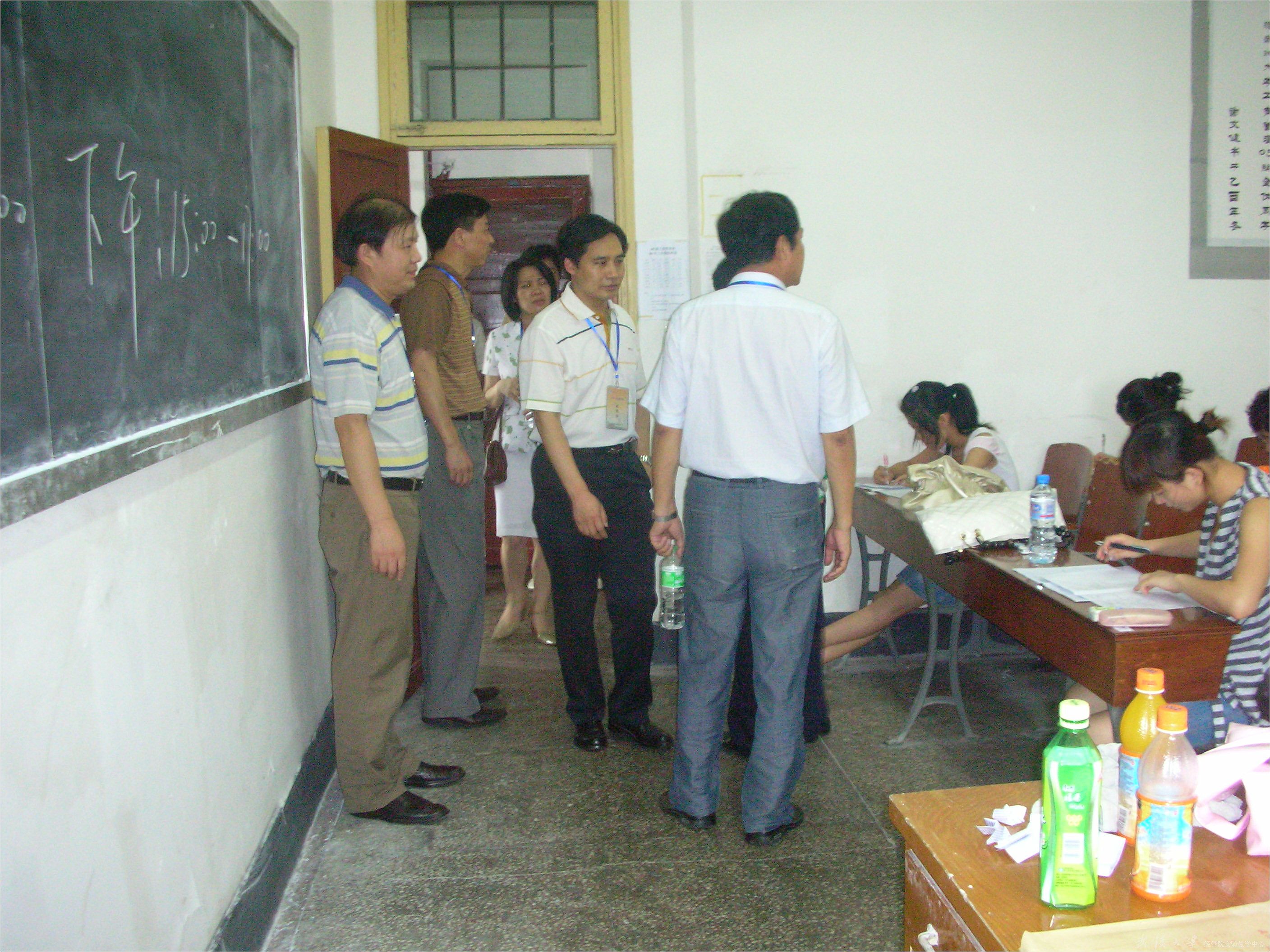 7月5日下午,学院党委书记尤传明,副书记张琦、郑先公,副院长叶永刚、李燕萍、曾国安、李继龙,学院本科教学办公室副主任王艳、周雄国一行到武大校区教五楼、教四楼、湖滨八舍教学楼学院本科生和成教生期末考试考场进行了巡视,巡视过程中学院监考教师全部到位,监考人员配备合理,考试中学生考风严谨,考场纪律良好,没有违纪和舞弊现象发生。