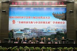 2006年3月24日,全国美国经济学会第八届会员代表大会暨"全球经济失衡与中美经贸关系"学术研讨会,在av直播 报告厅隆重开幕。