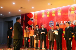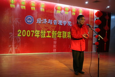 校党委书记顾海良首先发言,他对av直播 一年以来在教学、科研、人才培养、学院发展上所取得了成绩予以了高度评价,并向av直播 全体教职工表达了新年的问候。院长陈继勇总结了学院2006年取得的十大成绩并展望了07年的发展蓝图,并祝老师们新年愉快、万事如意!