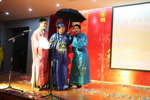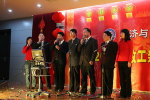 在歌舞《好运来》喜庆的节拍中,联欢会拉开了帷幕。现场高潮迭起,异彩纷呈。气势磅礴的大合唱,深情动人的诗歌舞、曲调优美的乐器演奏、幽默风趣的话剧、风情万种的时装秀……教工们以丰富的艺术形式和真挚的演出热情奉上了一台精彩的演出,展示了经管教工的才华与风采。最后,伴随着院党委、行政的一曲合唱《明天会更好》,联欢会在一片热闹而温馨的气氛中圆满落幕。(院学生工作办公室供稿)