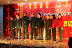 12月29日下午,av直播 张灯节彩、喜气洋洋,学院教工活动中心内欢声笑语、座无虚席,2007年教工元旦联欢会在这里隆重上演。校党委书记顾海良、副校长吴俊培、校工会主席方世平、全体学院领导和全院教职工参加了本次盛会。