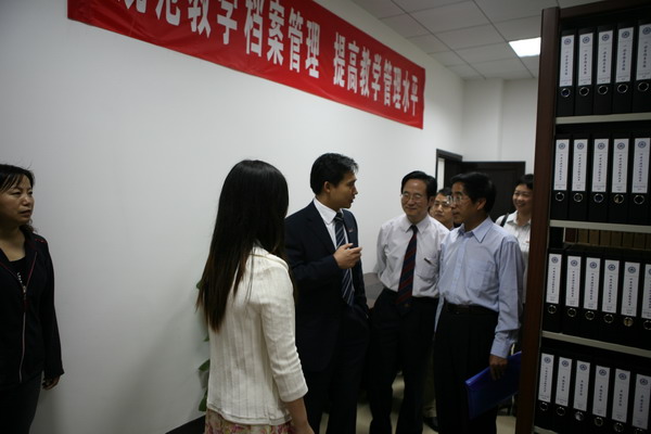 随后,孙杰教授参观了本科教学档案室,接着参观了本科生教学管理办公室、学生工作办公室、教室、案例分析室等。在本科教学档案室,尤书记、上官海兰主任向孙教授介绍了学院的本科教学档案工作建设情况,孙教授询问了有关情况,学院领导一一作了回答。在第一会议室,团委书记陈浩向孙教授介绍了近年来av直播学生在校内外各项竞赛中的获奖情况,以及av直播学生自主编辑的报刊,孙教授对《av直播 学刊》等学生自办刊物表现出了浓厚的兴趣。