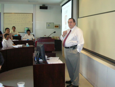 继9月21日至24日澳大利亚David Lamond教授讲授《高级人力资源管理》后,10月26日,在美国俄亥俄州立大学费雪商学院物流学教授Walter Zinn讲授的《全球供应链管理》课堂上,EMBA学员再次使用上av直播 最新配置的同声传译设备。