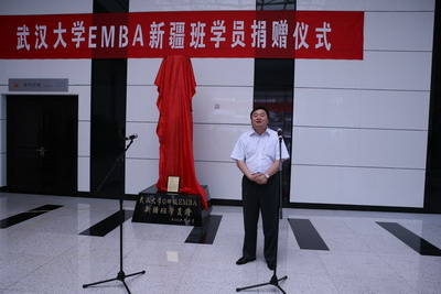 在热烈的掌声和音乐声中,陈继勇院长携手吴建中行长为“硅化木”揭彩,并向EMBA新疆班颁发了捐赠荣誉证书。