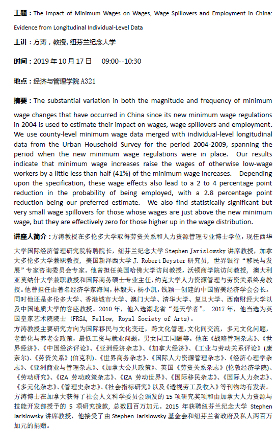 经济学高级研究论坛第136-139期