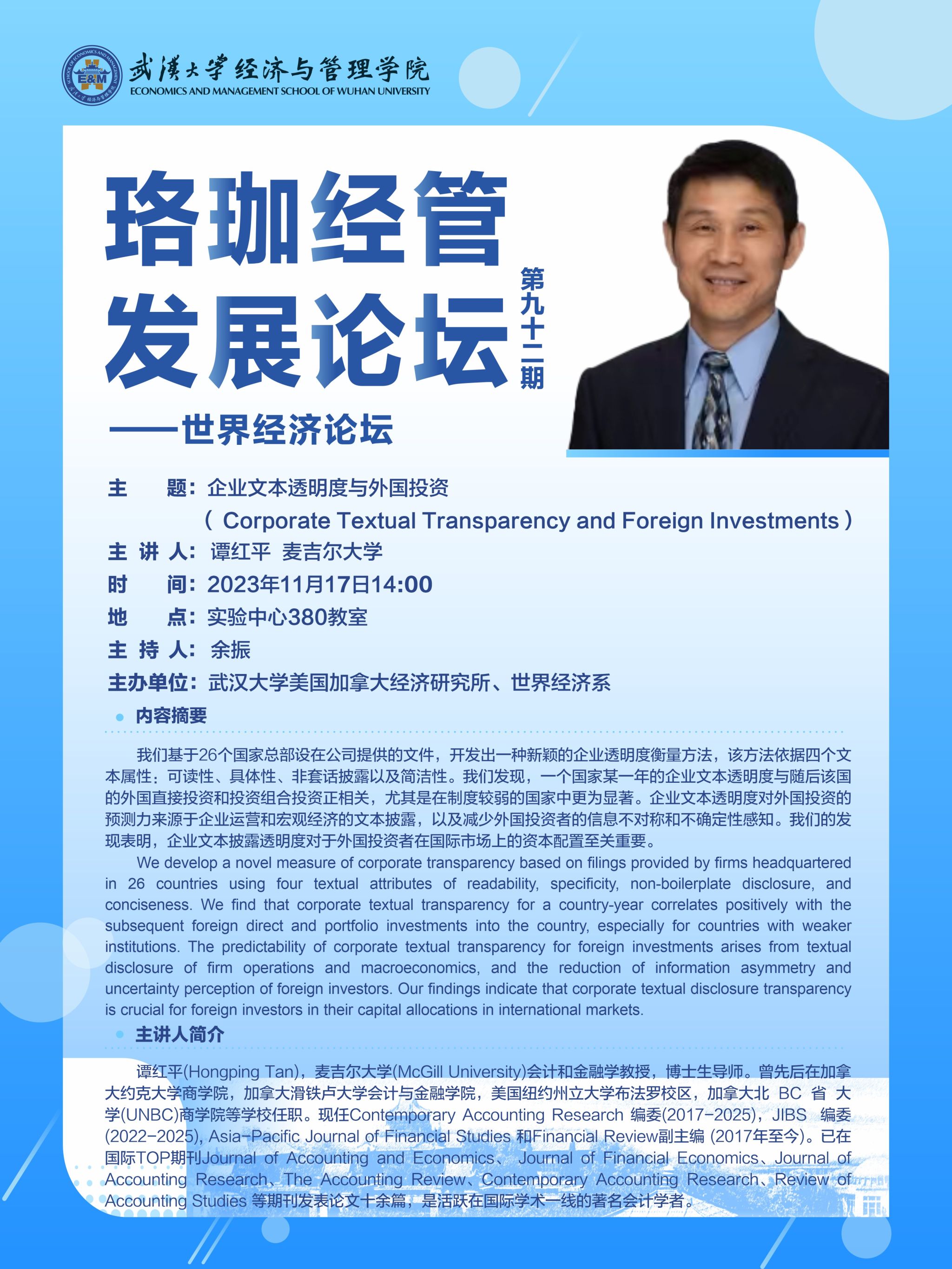 珞珈经管发展论坛第九十二期——世界经济论坛