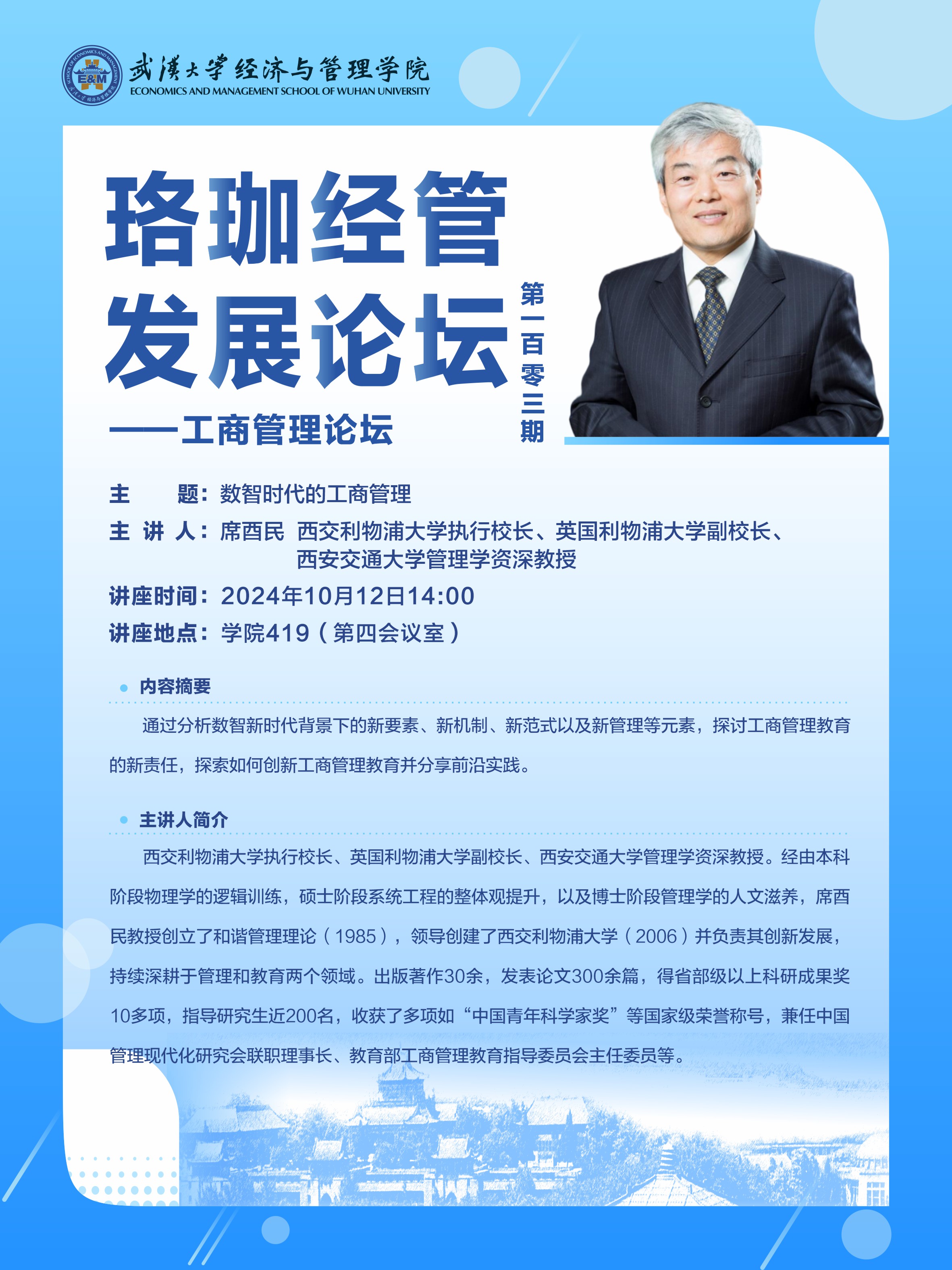 讲座预告 | 珞珈经管发展论坛第一百零三期——工商管理论坛