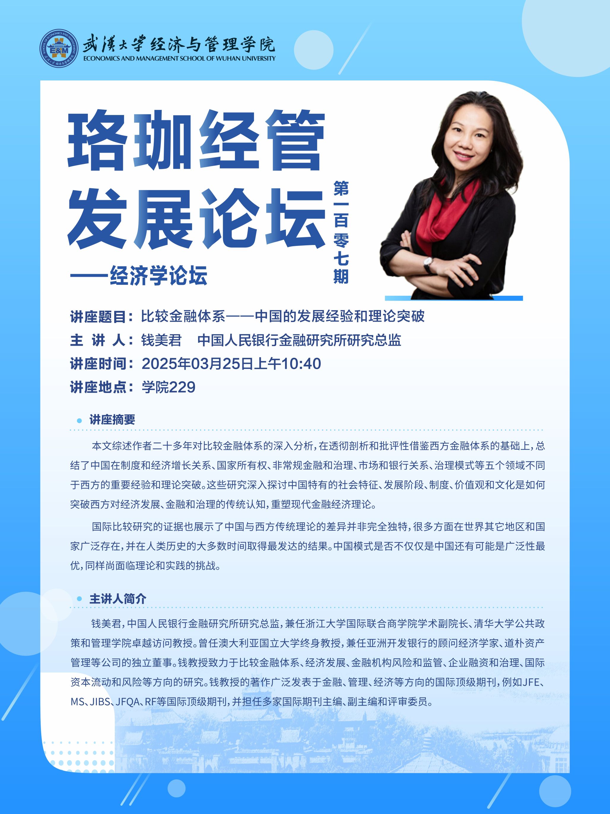 讲座预告|珞珈经管发展论坛第一百零七期——经济学论坛